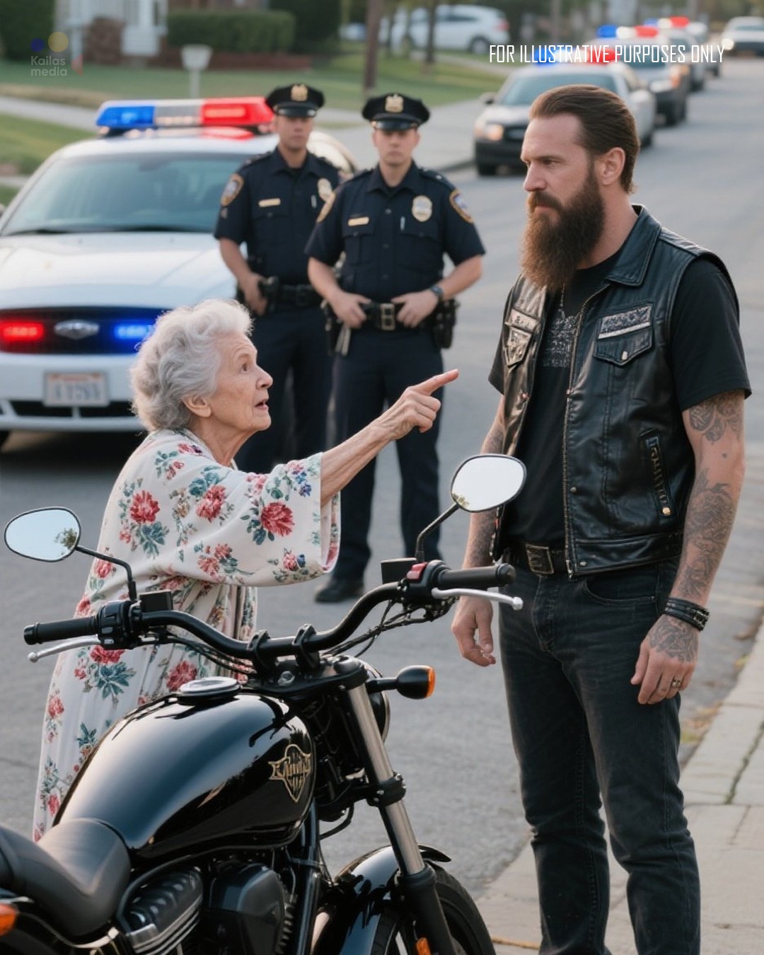 The biker’s jaw tightened, then eased. He looked at the officers — but his voice carried to all of us.
