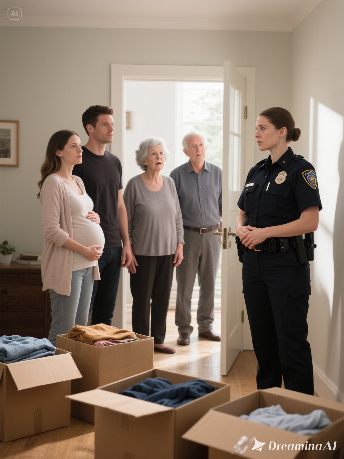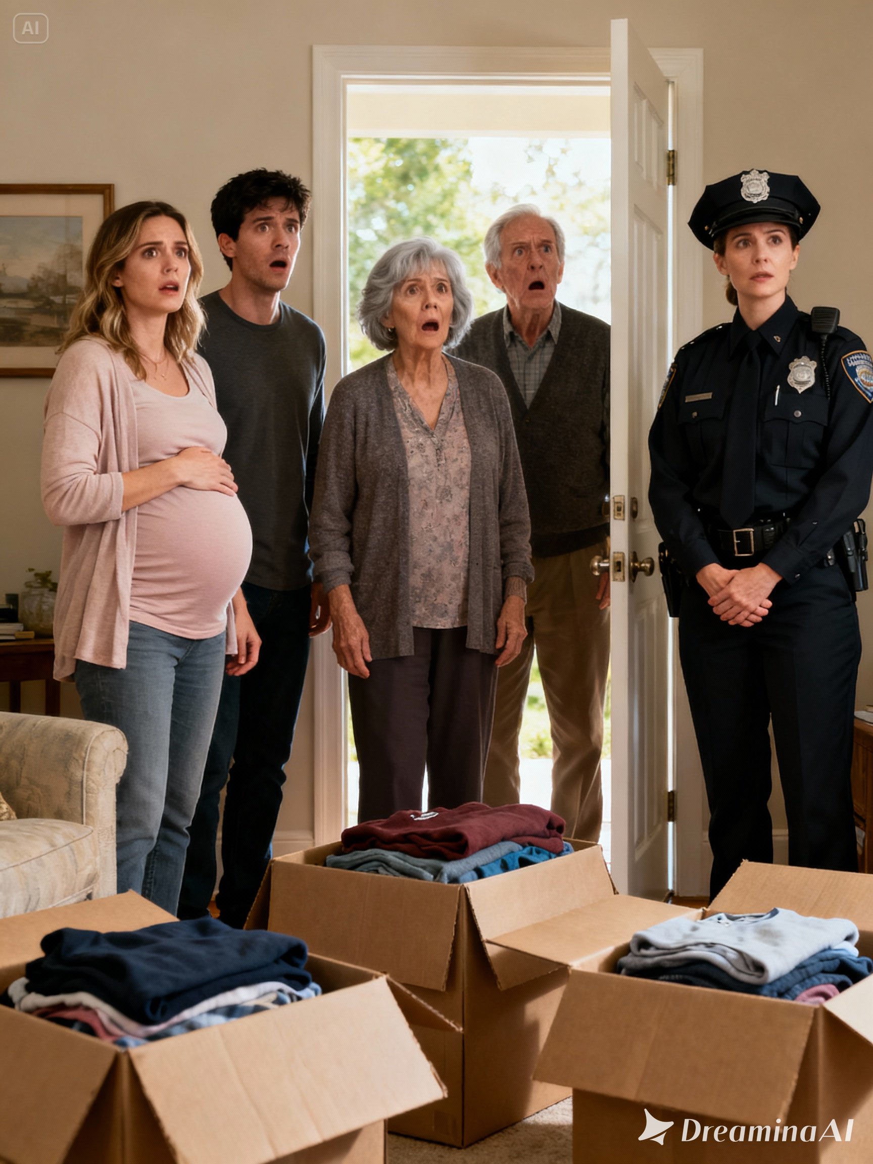 The officers arrived within twenty minutes—two composed professionals in dark uniforms who assessed the chaotic scene with neutral expressions. Boxes half-packed, furniture rearranged, his mother tearfully insisting it was a “misunderstanding.”