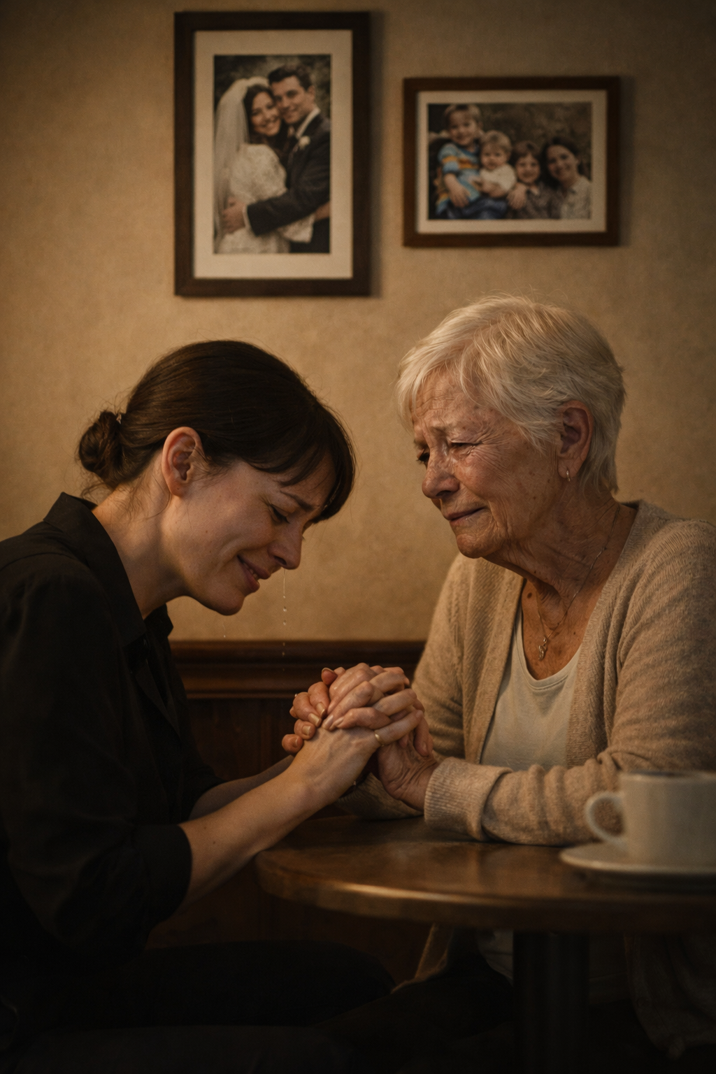 We sat together, two women with fifty years of longing between us, holding hands across a table covered in crumbs and lost time.