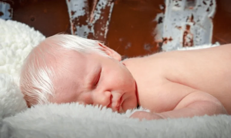 He came into the world with hair white as winter—something no one expected in a delivery room.