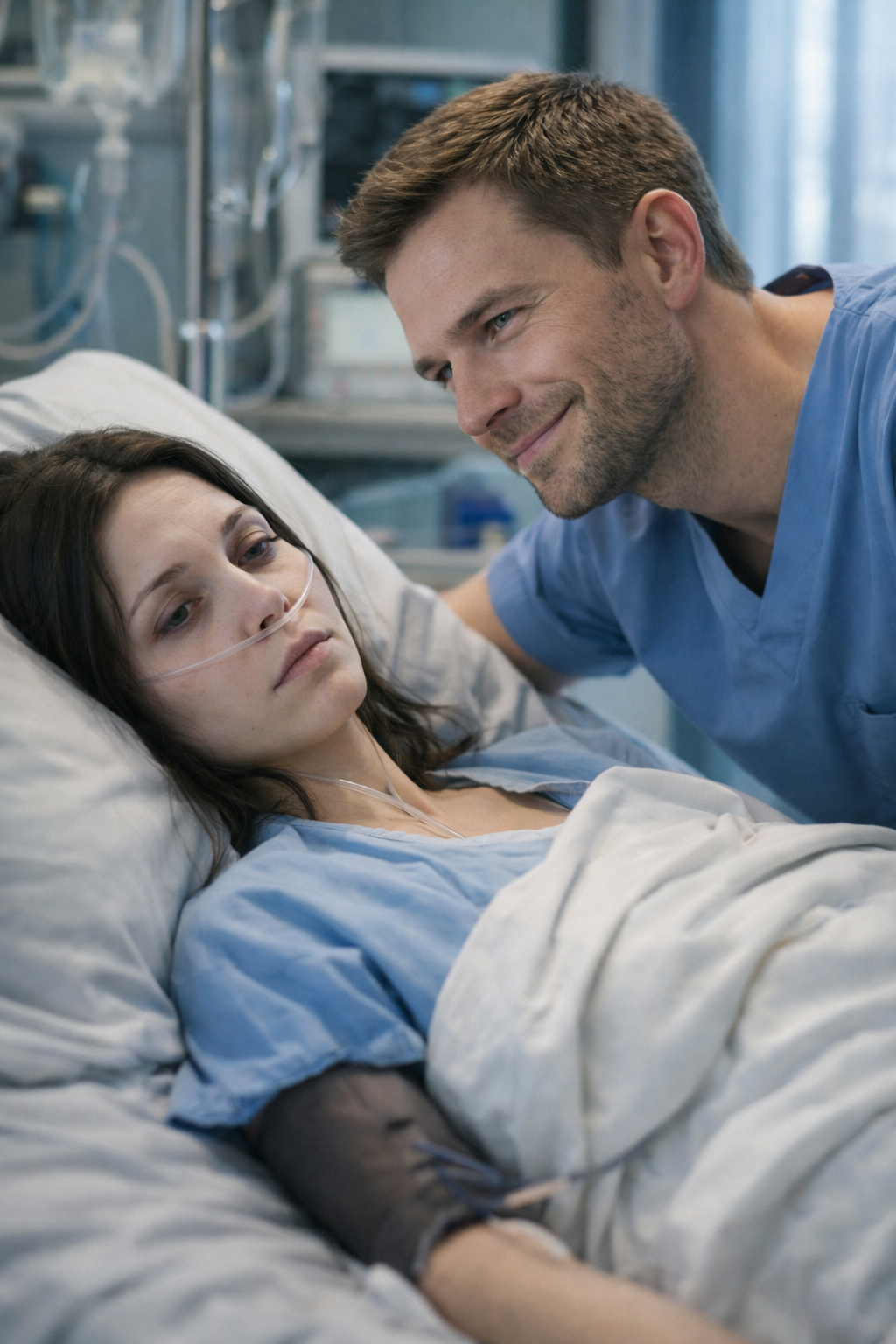 Just then, Carmen entered carrying a tray, cutting through the tension. Alejandro stepped aside, but his gaze shifted toward the IV pump. Carmen noticed immediately.