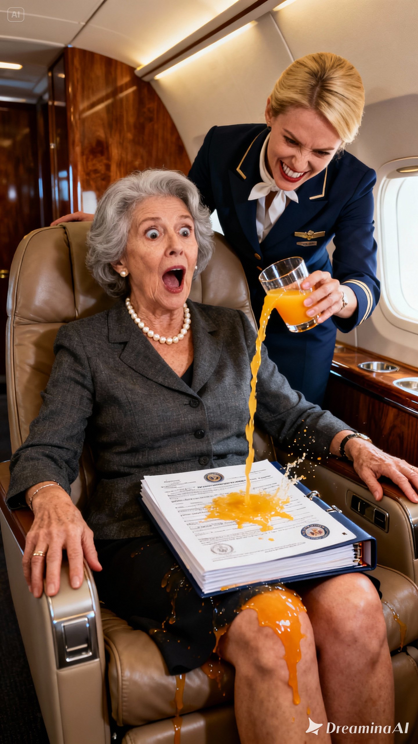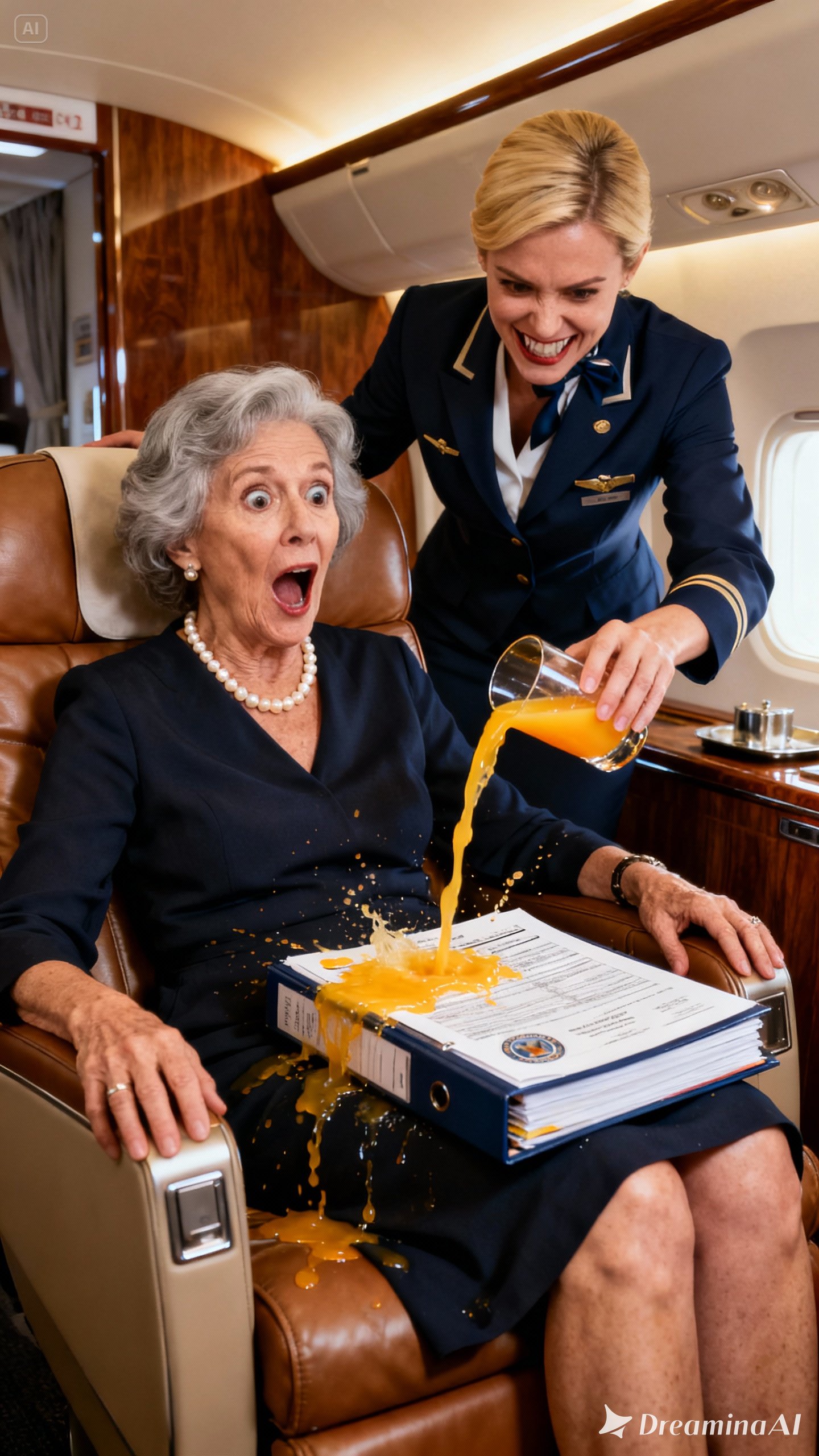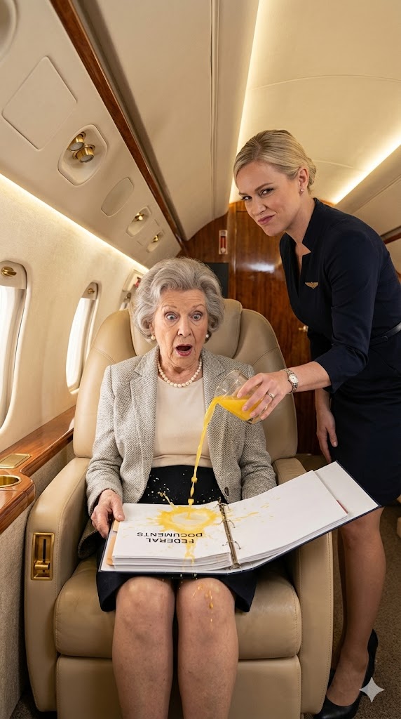 Some nearby passengers shifted, uneasy. Then, with dramatic slowness, Victoria tipped the cup, letting juice spill across Eleanor’s lap—soaking her tailored suit, her federal documents, and the secured electronic case by her feet.