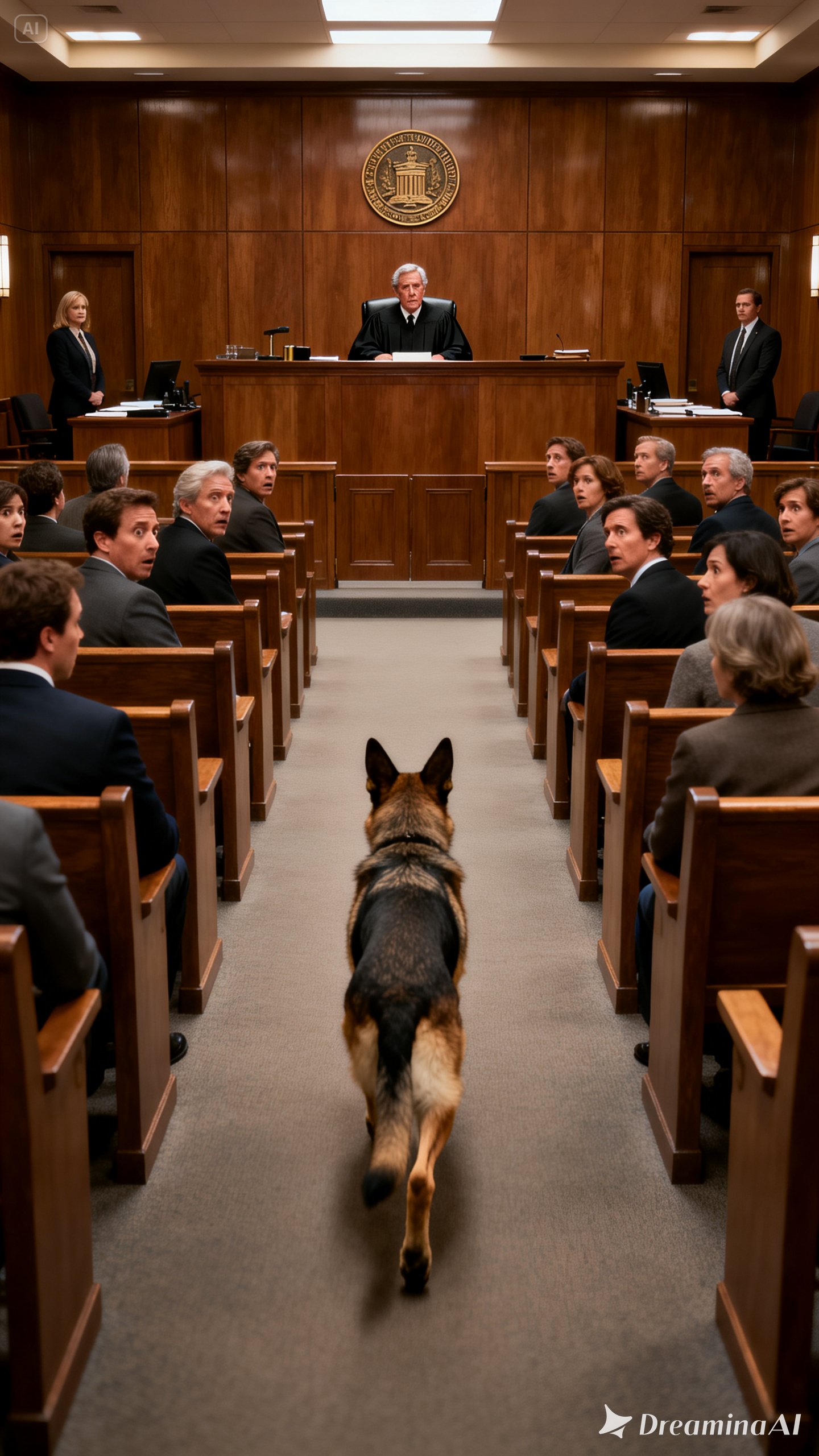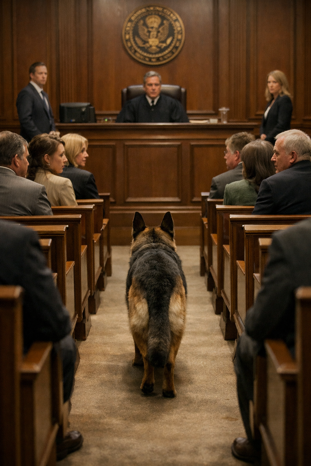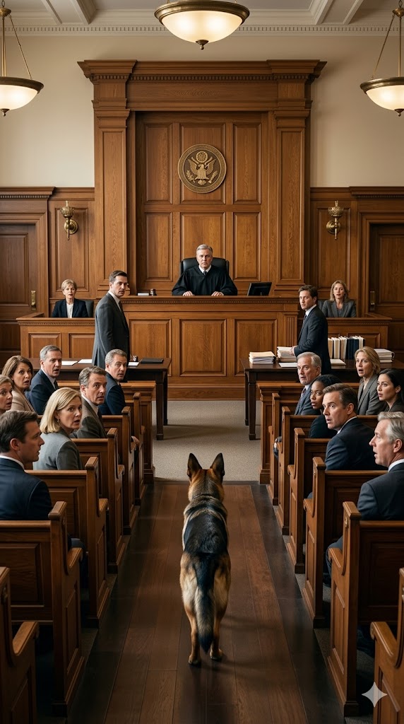 A wave of movement swept through the room. Journalists began writing frantically, and attorneys rose to their feet. But Jonathan heard none of it. His eyes were locked on the dog, which, as if sensing the shift in the air, wagged its tail and stepped forward.