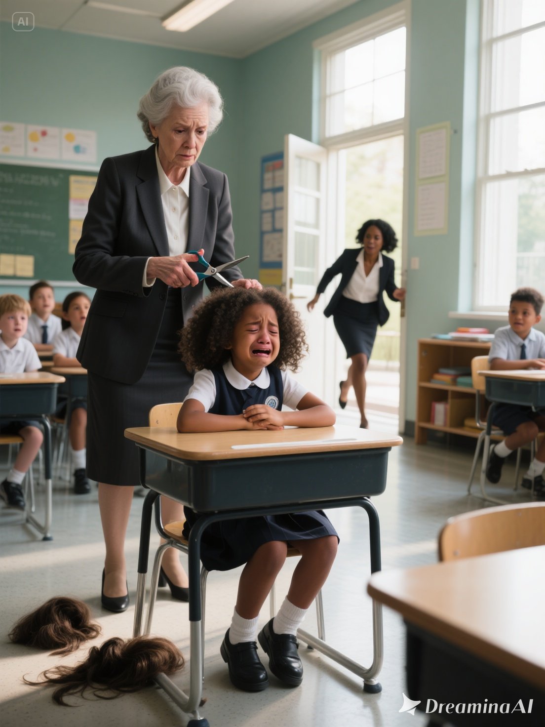 The teacher stammered, “Her hair violated the dress code. It was—”