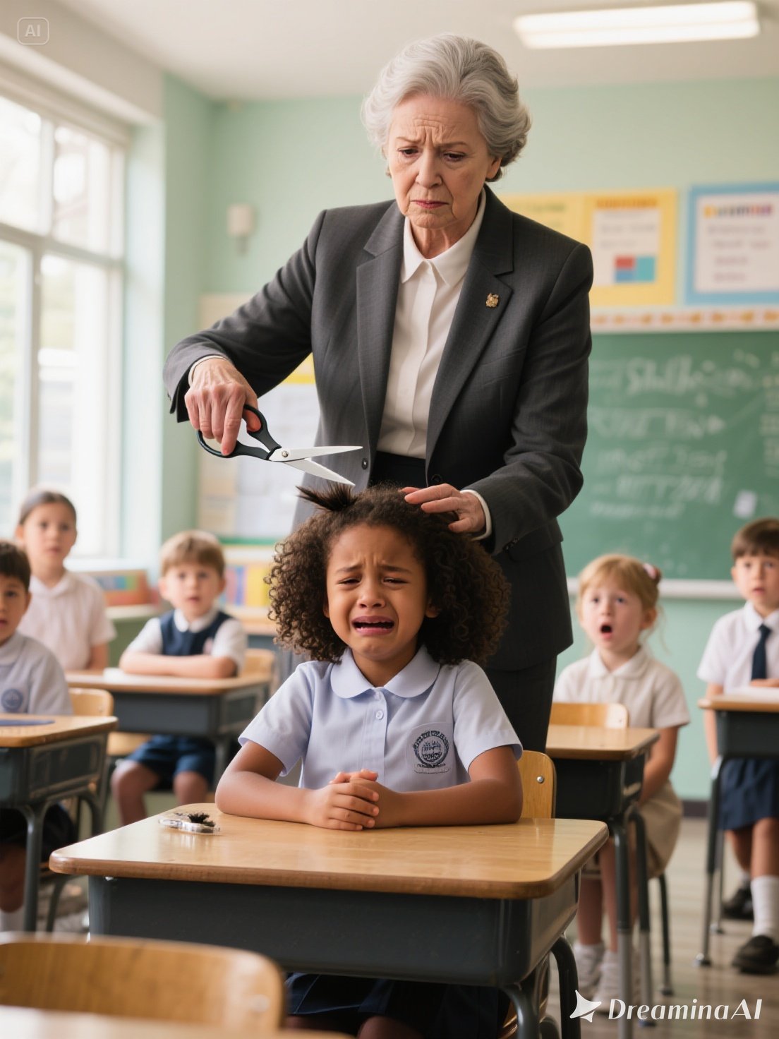 But it was too late. In one horrifying motion, the teacher seized a handful of curls and chopped them off.