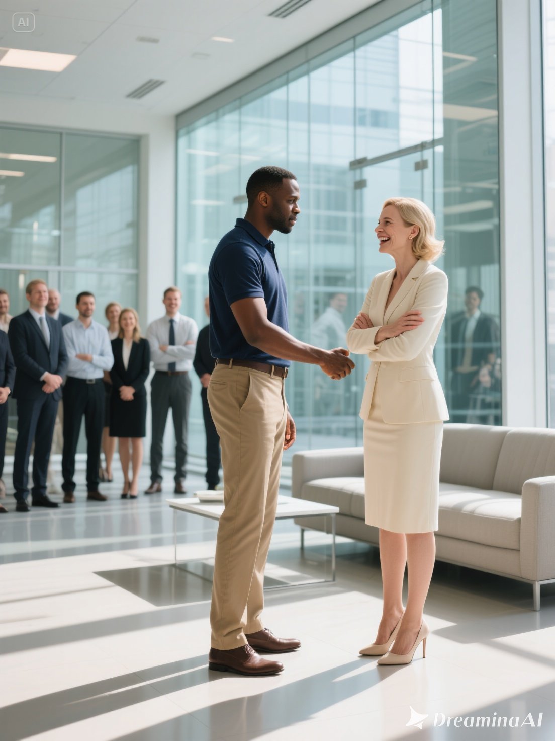 Morning light spills across the Four Seasons lobby. Victoria Ashford stands near the windows in her perfectly pressed Chanel suit, laughing with two German investors. A Black man in a navy polo approaches, carrying a leather portfolio. Ms. Ashford, Darien Cole. We have a 9:00 meeting about the series C investment. He reaches out to shake her hand.