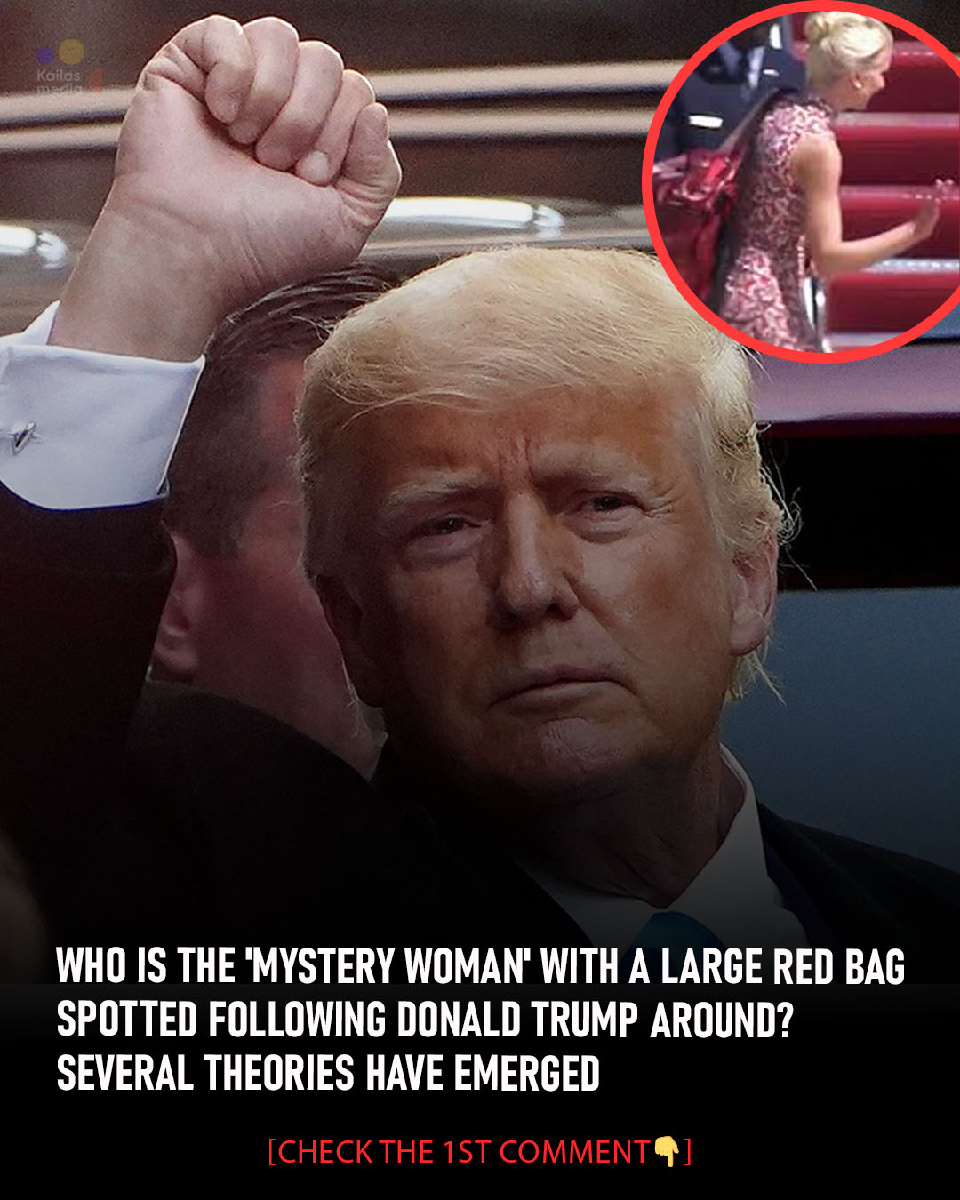 A video showing a woman with a large red bag boarding Air Force One just behind Donald Trump during his trip to Nevada and Arizona has gone viral, triggering widespread online speculation about her identity.