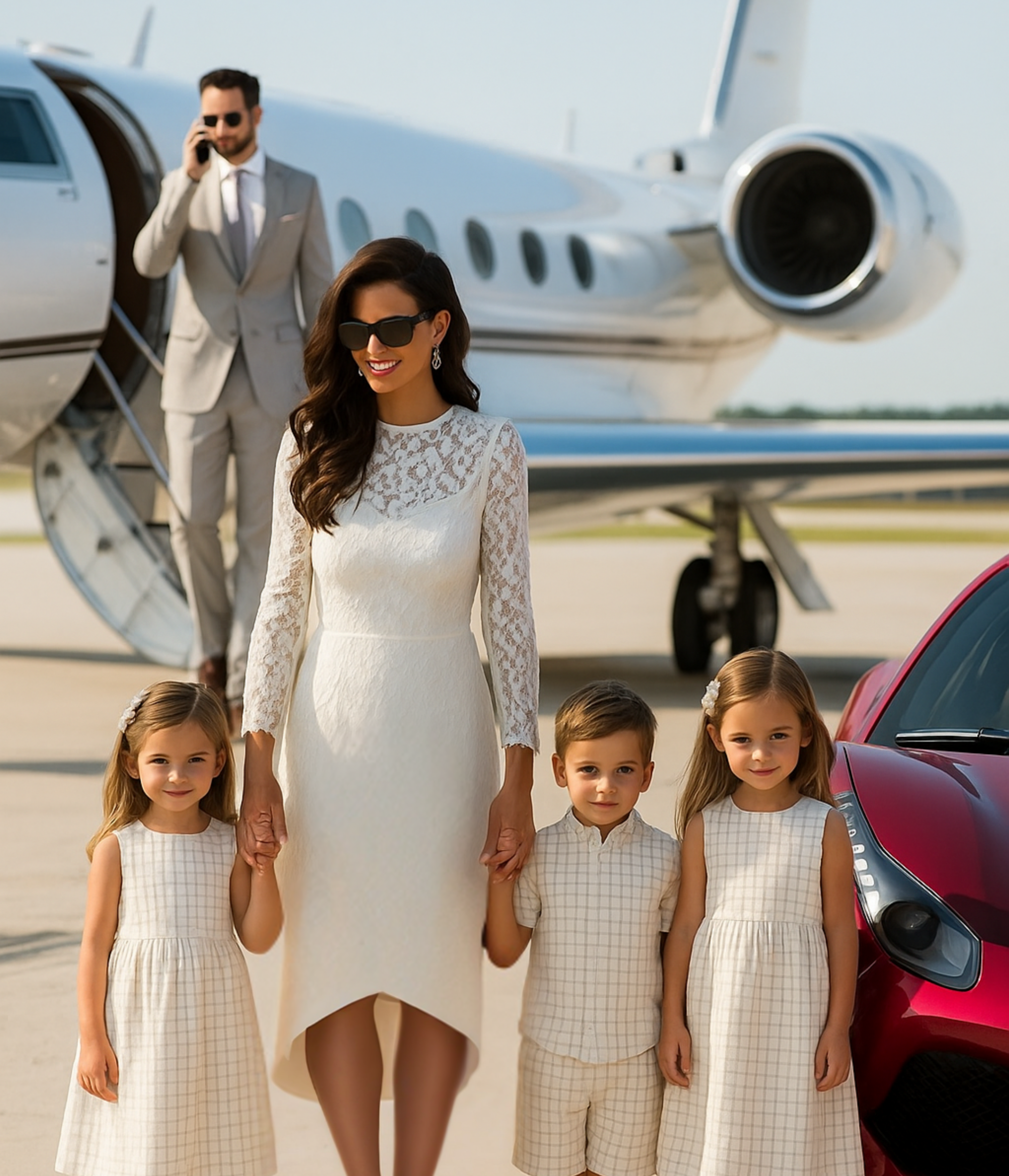 At that moment, the jet door opened, and three children bounded in, their laughter filling the cabin. “Mom!” they cried, rushing into her arms.
