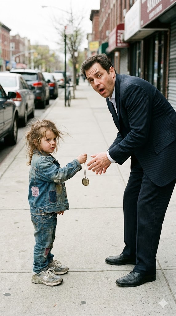 “I didn’t steal it,” she said, her voice trembling but steady. “It… it fell out of your pocket when I bumped you. But…” She hesitated, tilting her head. “My mommy has one just like it.”