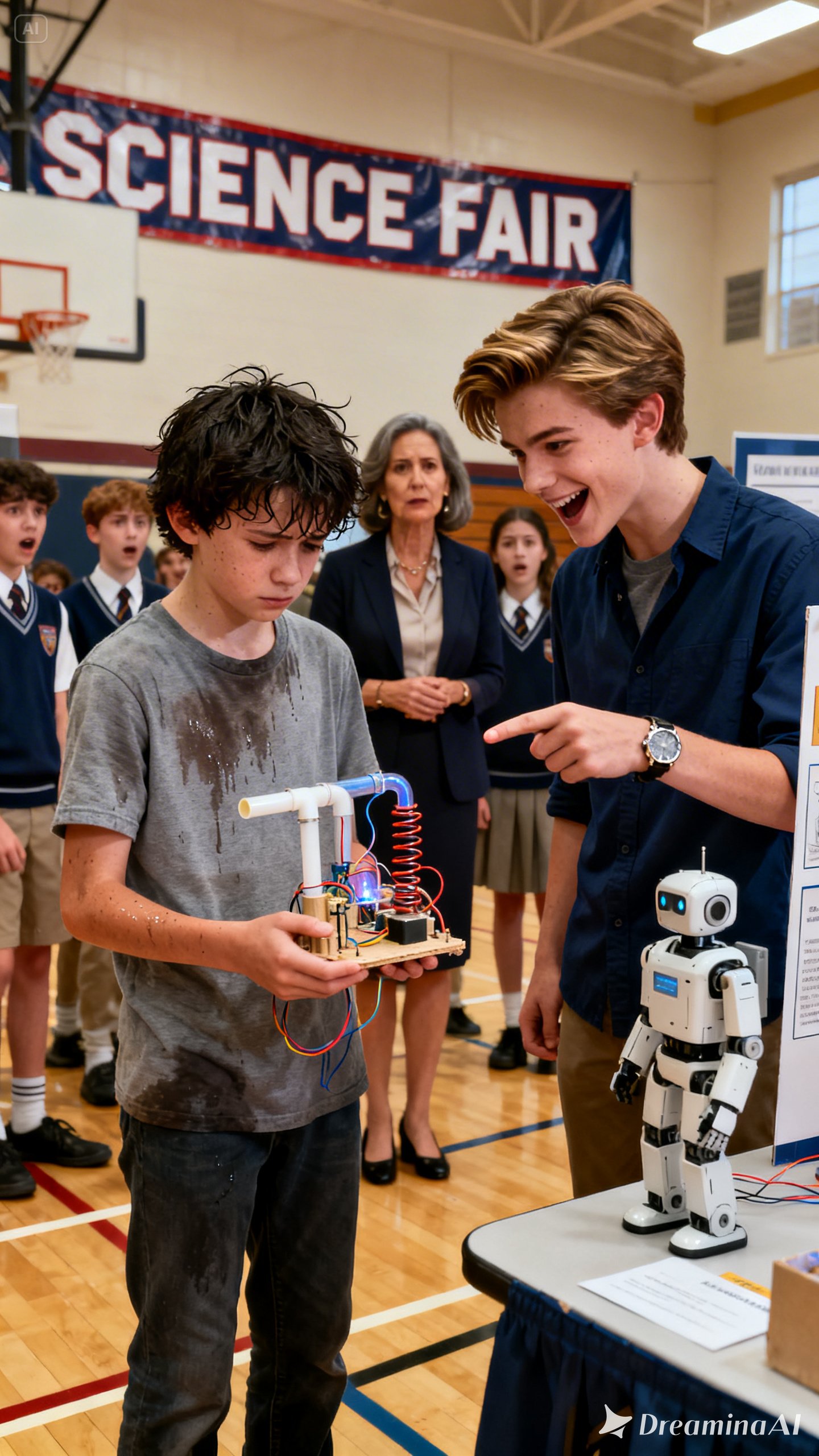 “Differential pressure?” Mauricio mocked, nudging the table with his foot. “Sounds like you’re too poor to buy batteries. My dad donated a $50,000 robot that’s over there. And you bring… garbage.”
