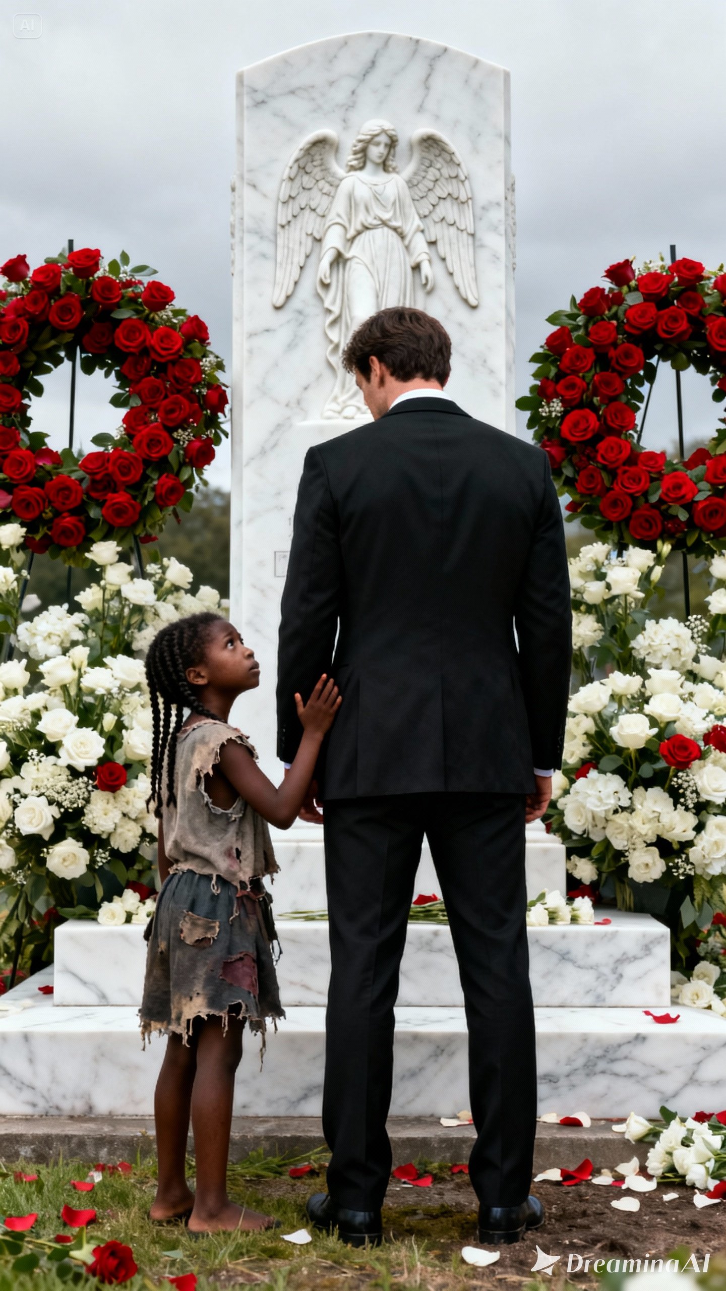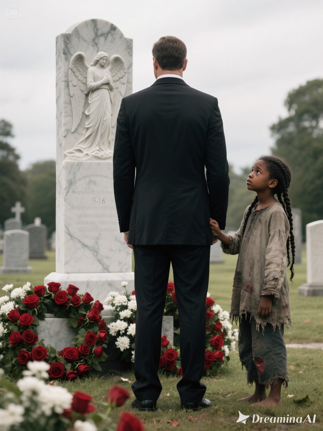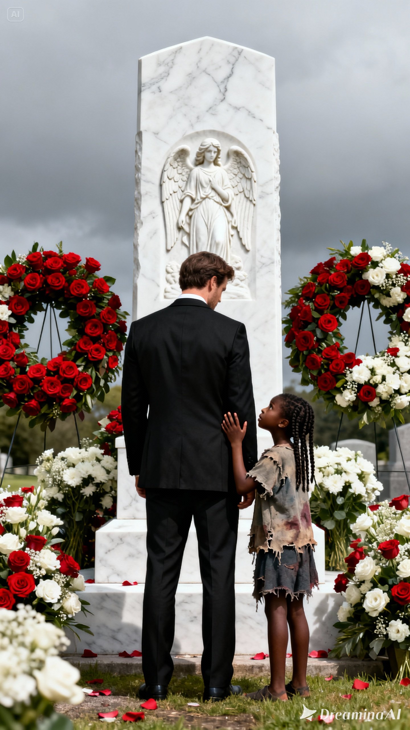 Now, as the drizzle thickened, Edward felt that familiar ache tightening in his chest. He didn’t immediately notice the small figure approaching through the rows of graves — a slight girl around eleven or twelve in a worn yellow raincoat. Her shoes sank into the wet grass as she stopped beside him.