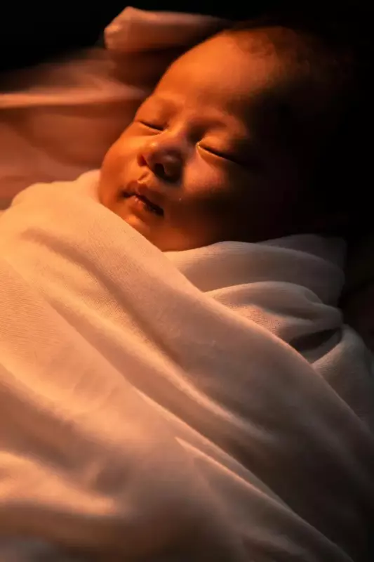 In the crib above, the infant slumbered tranquilly, arms extended overhead, a faint grin on her lips. Maya positioned herself beside the cot, merely observing.